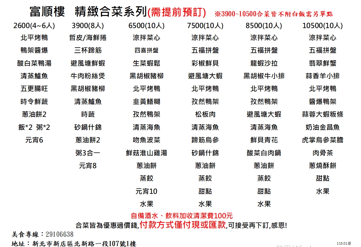 富順樓 精緻合菜系列 ( 需提前訂位.菜 )