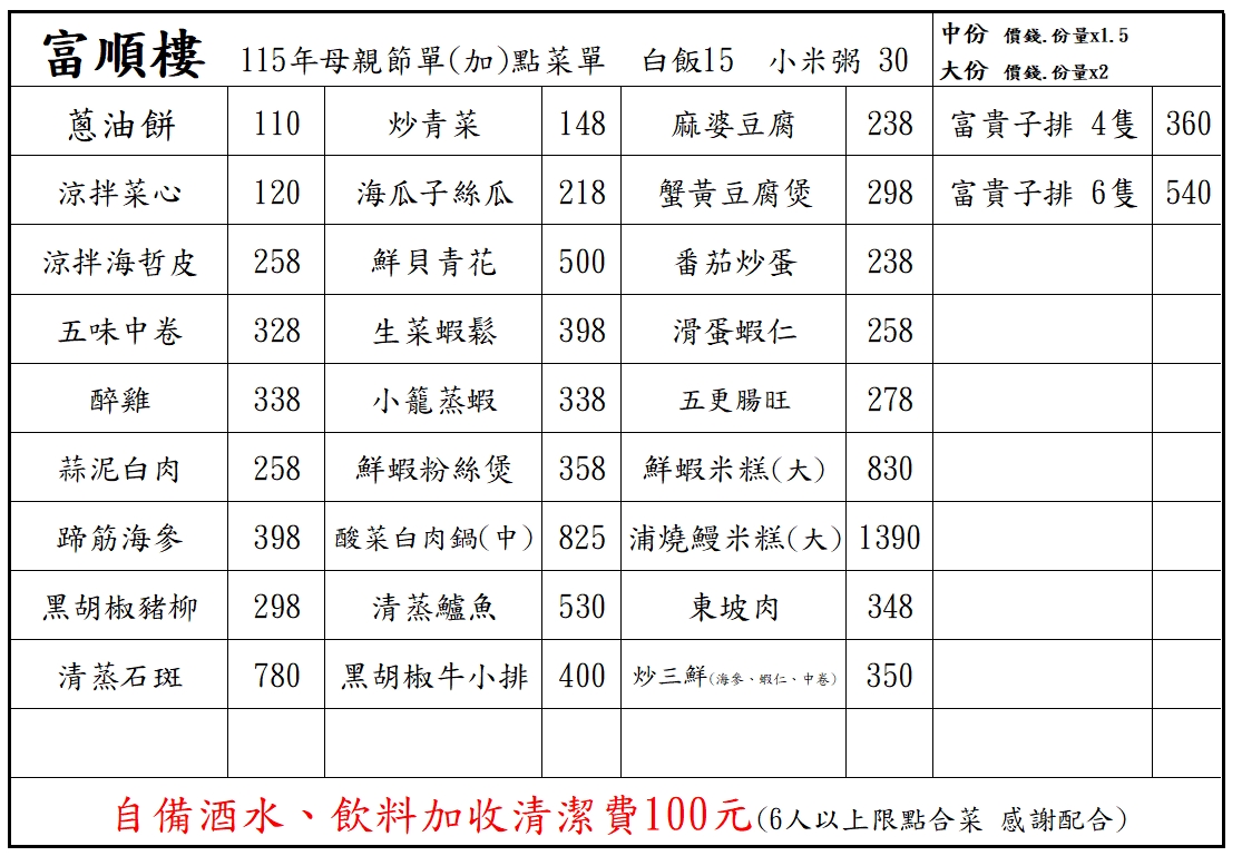 115年母親節精緻合菜菜單